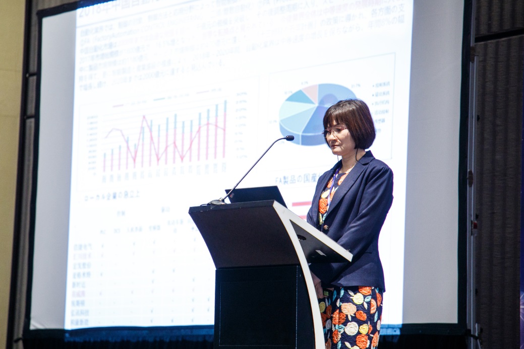 茶歇过后,FE坂口副事业部长进行了日本总社FA事业部方针说明,接着FCS的高桥室长的低压电器方针说明,FEC的INV&MC的新产品介绍有条不紊地相继展开。