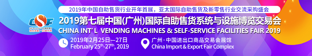 由权威机构联袂打造具有全球化专业的2019第七届中国(广州)国际自助售货系统与设施博览交易会(简称CSF)将于2019年2月25日,在广州•中国进出口商品交易展览会馆盛大开幕。作为一个全面、集中的自助售货产业链采购交流基地,届时将有超过700自动售货机相关企业参展。