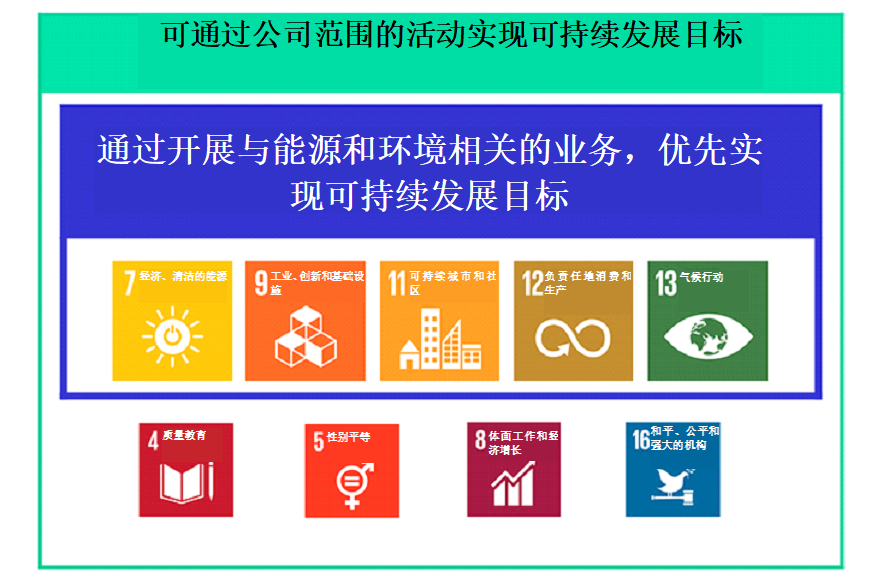 促进繁荣、鼓励创新并寻求与自然环境协调发展是FE企业理念的部分内容,同时也是管理政策的部分内容,公司希望通过开展与能源和环境相关的业务,为打造负责任和可持续的社会做出贡献。FE还希望彻底贯彻企业理念和管理政策,为实现可持续发展目标助力。